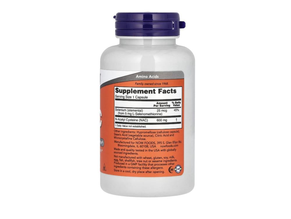 إن-أسيتيل سيستين (NAC) هو شكل مستقر من أحماض إل-سيستين الأمينية غير الأساسية. وهو من الأحماض الأمينية التي تحتوي على الكبريت الذي يعمل كعامل استقرار لتشكيل هياكل البروتين، وضروري أيضاً لتشكيل الجلوتاثيون. يكون موليبدينيوم وسيلينيوم معادن نذرة أساسية تسهل إنتاج العديد من الإنزيمات المهمة.
